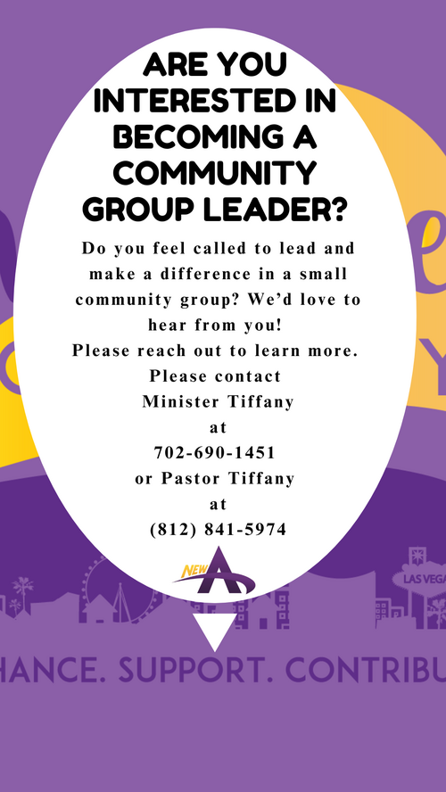 Welcome to New A Community Groups. Community Groups are designed for a group of believers to do life together! This is a place for you to connect with others; to love and be loved; to pray and get prayed for; and to see others and be seen. The bible says that we are to go and make disciples and what better way to do that than in community!